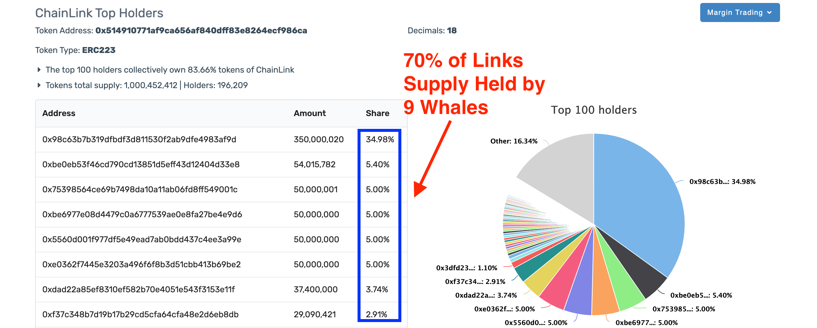 This is a big issue for Investors because the people at the top are in full control of the price. When I presented the ChainLink concentration on Twitter, I wasn’t met with too much resistance from the Link community (because they know its true)